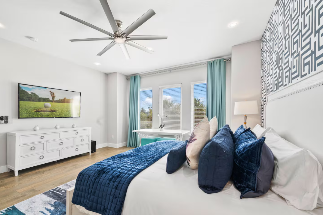 Family friendly team home that sleeps 14 guests, featuring 6 bedrooms, 8 beds, and 7.5 bathrooms, plus a game room and private theater. Perfect for groups attending our Orlando experience.